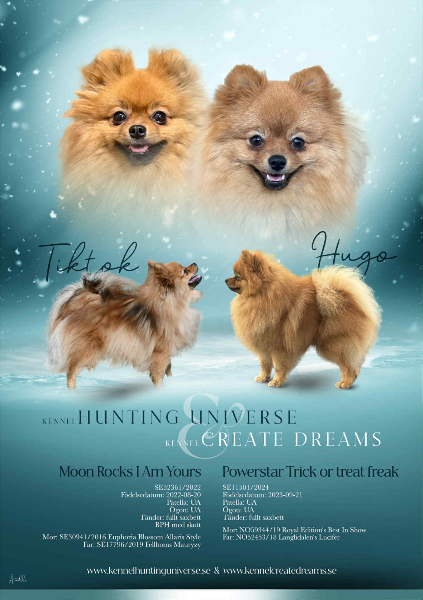 Vi har alla våra kullar tillsammans med Jennie på Hunting Universe kennel, då vi deläger alla våra Kelinspitzar, ett samarbete vi är mycket tacksamma för.